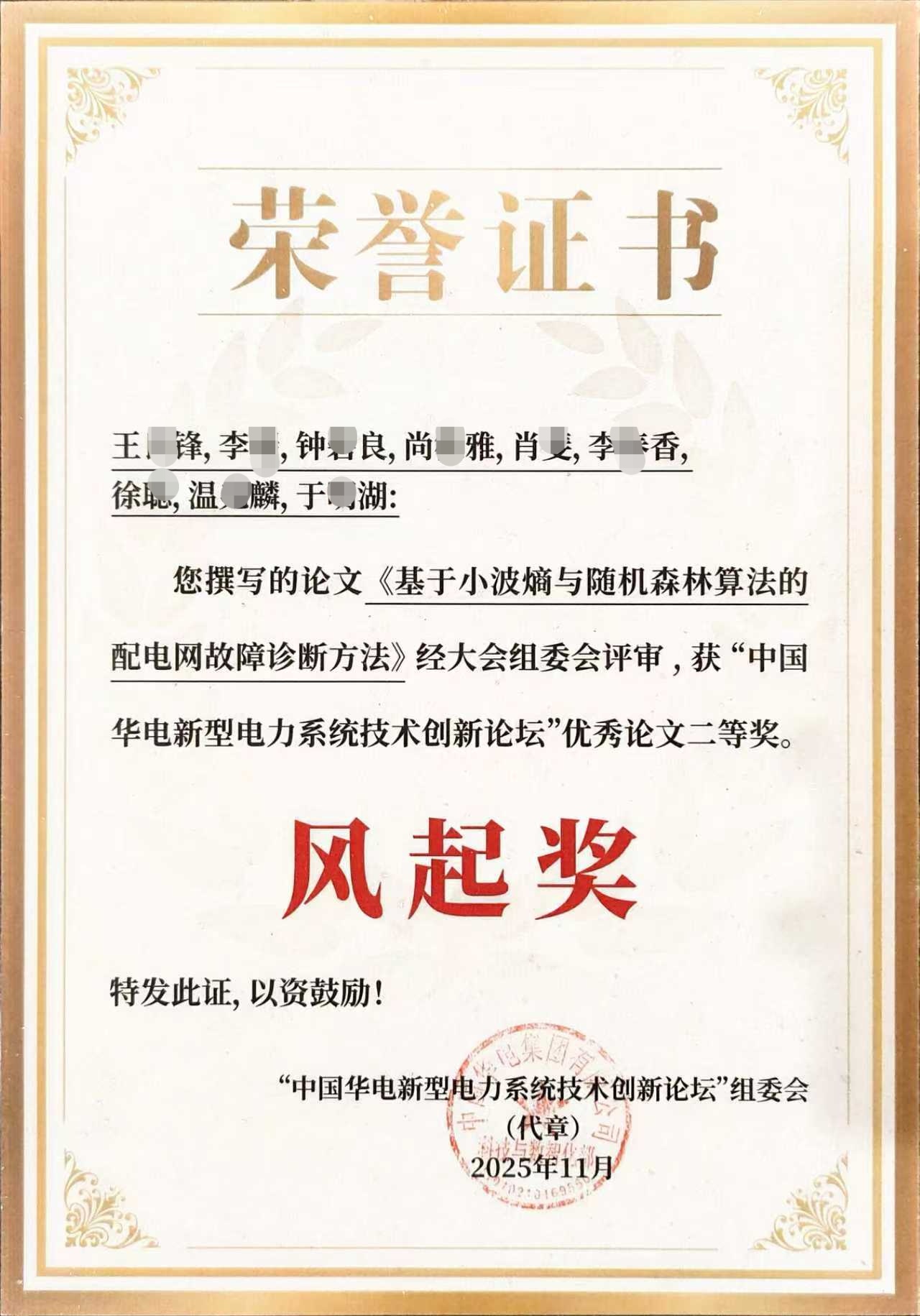 近日,2025年中国华电新型电力系统技术创新论坛在江苏南京成功举办。由我校低空装备与智能控制学院电气工程223班王良锋同学撰写的论文《基于小波熵与随机森林算法的配电网故障诊断方法》,经大会组委会严格评审,荣获优秀论文二等奖(风起奖)。