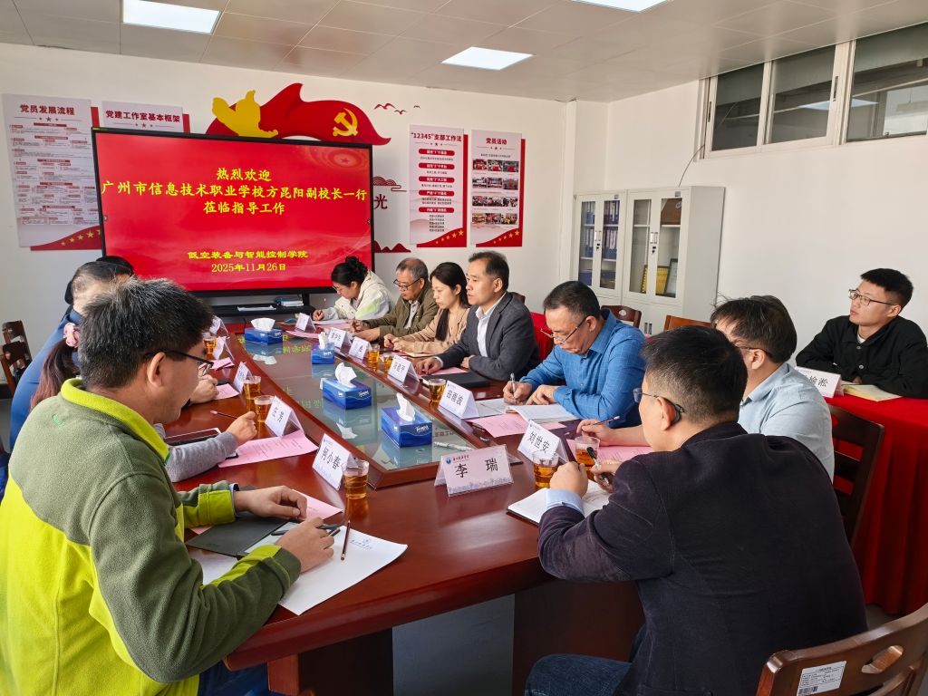 11月26日上午,广州市信息技术职业学校、广州城投新基建广宽公司一行到访学校,三方交流会于B9轮机楼508会议室成功举行。广州航海学院副校长陈建平、广州市信息技术职业学校副校长方昆阳、广州航海学院低空装备与智能控制学院田雨波院长、广州城投广宽公司市场经营部副总经理易根叶及各有关单位负责人与专业教师共同出席了本次会议。